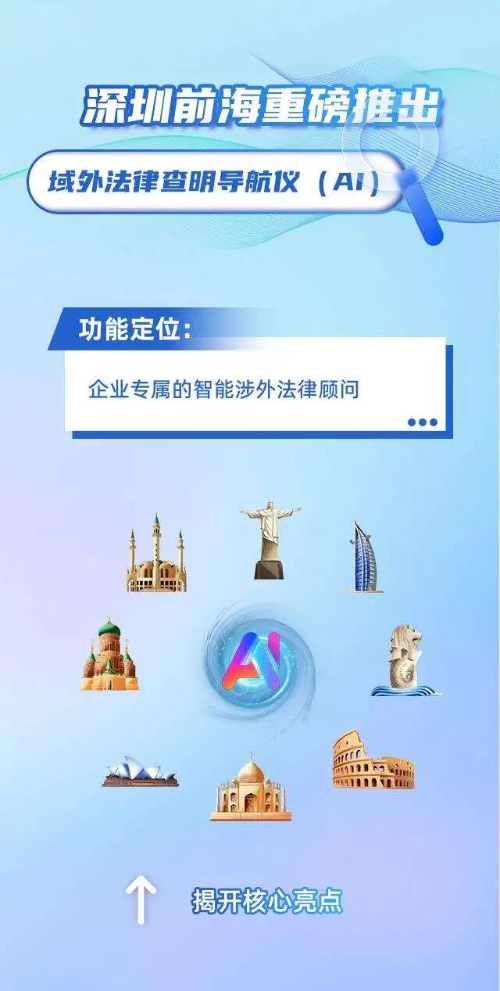 近日,在深圳市委政法委统筹指导下,由深圳市前海管理局牵头建设的深圳市域外法律查明中心,正式推出“域外法律查明导航仪AI”功能。这一创新举措不仅填补了跨境法律服务领域的智能化空白,更以科技赋能为深圳及粤港澳大湾区企业“走出去”搭建起坚实的法律屏障。