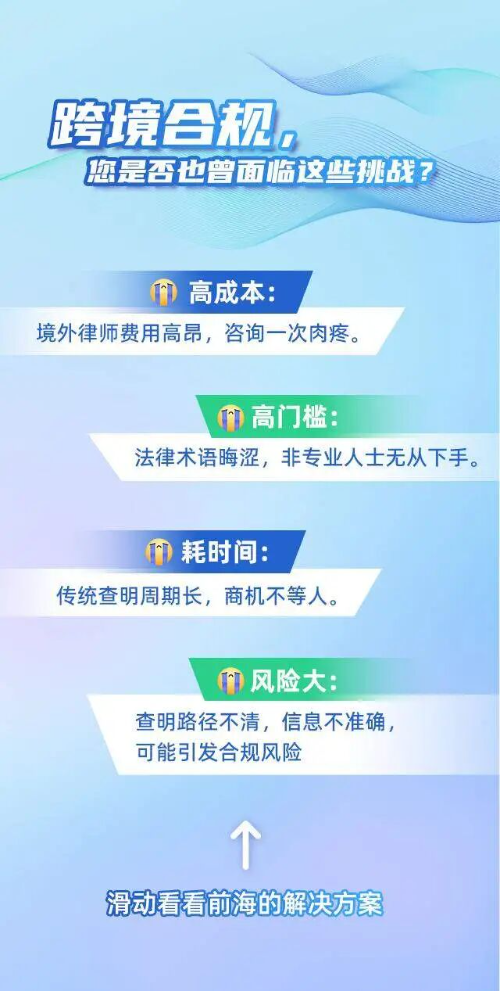 效率大提升。依托前海“一带一路”法治地图自研数据库与人工智能技术,大幅缩短法律查明周期,助力企业告别传统法律查询的繁琐流程。