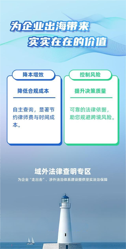 一方面,企业无需依赖境外律师或专业机构,即可自主获取多国法律参考,显著降低法律咨询费用与时间成本;另一方面,系统基于专业解读与官方条文溯源,为海外投资、贸易合作等关键决策提供可靠法律依据,助力企业提升风险预判与应对能力。